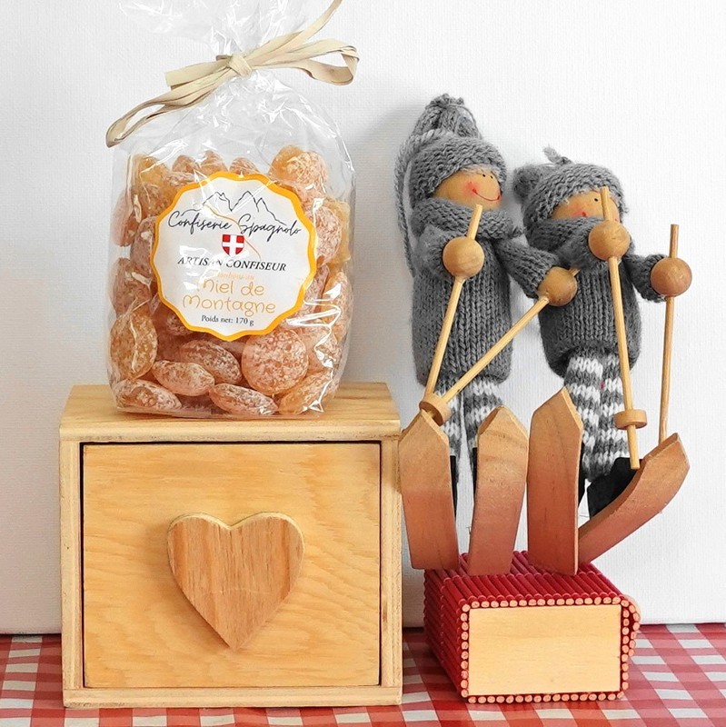 Composition : sucre, sucre de glucose maïs, miel de montagne de Savoie 14%