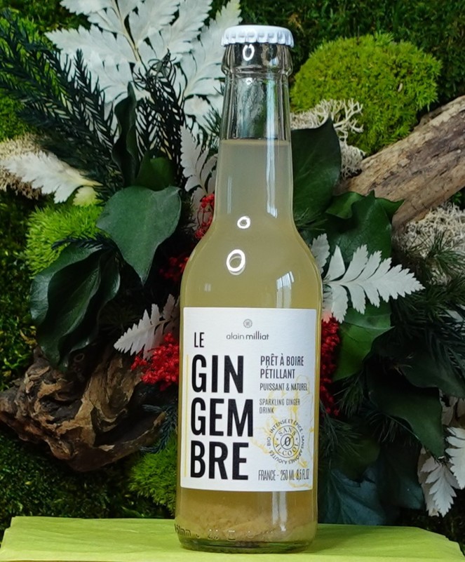 Composition : eau gazeifiee, jus de citron vert* 5,5%, jus de gingembre* 4,1%, miel*, sucre liquide*, infusion de verveine* 0,5% (eau, verveine *, jus de citron*), infusion de piment* 0,004% (eau, piment*, jus de citron*)