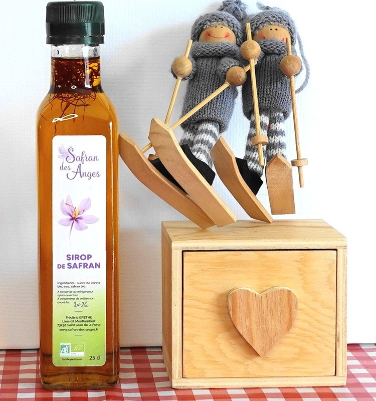 Incroyable du safran bio cultivé à 900 mètres d'altitudes en Combe de Savoie au pied du Massif des Bauges. Avec lequel, il élabore ce sirop.